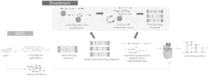 Some embodiments of the methods and compositions provided herein relate to obtaining long read information from short reads of a target nucleic acid. Some embodiments include steps to selectively generate, mark, and amplify long nucleic acid fragments. Some embodiments include enriching for certain sequences in the long fragments with selection probes directed to major histocompatibility complex (MHC) genes. Some embodiments also include fragmenting the long nucleic acid fragments into shorter fragments for sequencing, and informatically reconstructing a sequence of the target nucleic acid.