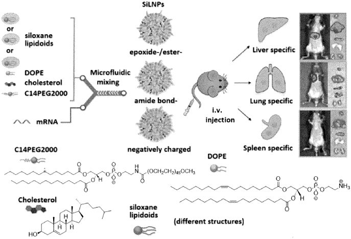 4.20250295788SILOXANE-BASED LIPIDS, LIPID NANOPARTICLE COMPOSITIONS COMPRISING THE SAME, AND METHODS OF USE THEREOF FOR TARGETED DELIVERY