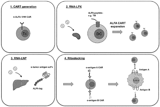 The invention relates to agents and methods for activation of immune effector cells and targeted delivery of the activated immune effector cells to target cells. In one embodiment, the invention involves providing to a subject immune effector cells genetically modified to express a chimeric antigen receptor (CAR). In one embodiment, the invention involves administering RNA encoding a peptide or polypeptide (activation compound) comprising a binding moiety for the CAR and administering RNA encoding a peptide or polypeptide (docketing compound) comprising a binding moiety binding to target cells (primary targeting moiety) and a further binding moiety for the CAR (secondary target).